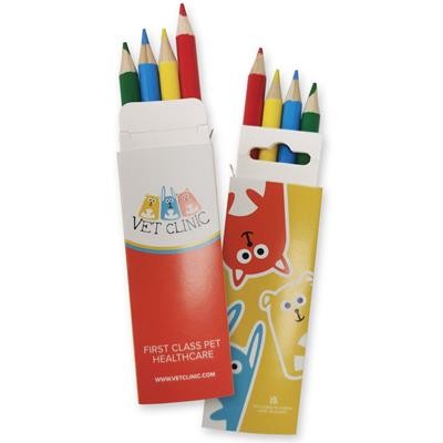 Pack of 4 Colouring Pencils in a White Card Carton. Supplied in a Full Colour Printed FSC Card Sleeve. 88mm Length. Minimum Quantity: 100.