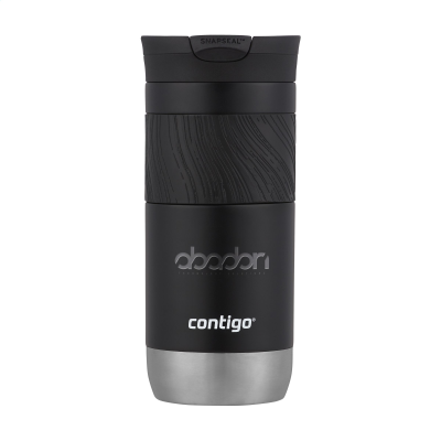 0 470 Ml Thermo Cup in Black. Double-Walled Stainless Steel Metal Contigo® Thermos Cup: Vacuum Isolated, Equipped with a Large, Non-Slip Rubber Grip & Spout with Snapseal™ Technology Which Makes It Easy to Drink. Click the Button Up with Minimum Quantity: 8